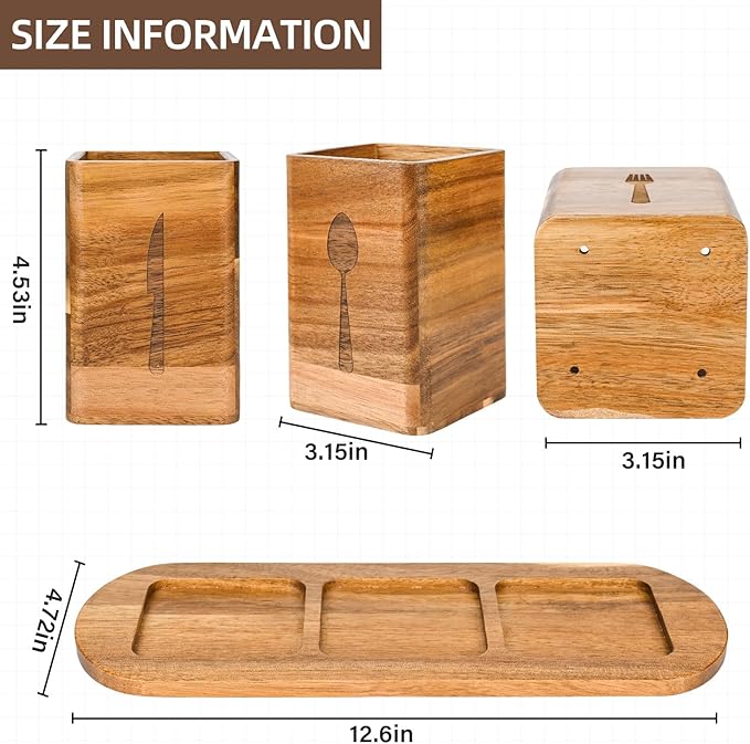- Utensil-Friendly with 4 Drainage Hole - Each silverware can be easily removed from the tray and wiped dry immediately after cleaning to extend its lifespan, simple and convenient. The weight of natural Acacia Wood material is also very good, and the edges and corners are finely polished and rounded, which does not harm the hands and provides a comfortable grip. The bottom drainage hole can effectively prevent moisture accumulation and protect your tableware from discoloration.