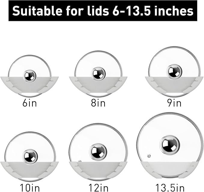 - For Lids Size from 6" To 13" : Pot lid storage suitable for small to medium size pot lids 6" to 13" in diameter. Reserve 11" wide flat surface for sticking. We have 5 pieces or 10 pieces, black or white, convenient for your choice.