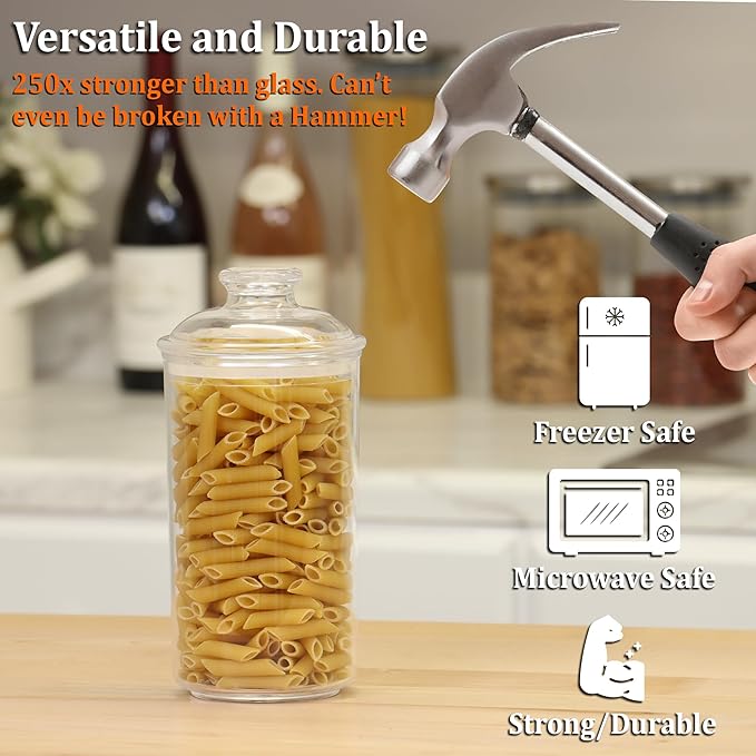 - SUPERIOR CONSTRUCTION: Engineered from exceptionally durable acrylic, our jar sets the standard with its virtually shatterproof design, capable of withstanding high drops and even impact from a hammer. Moreover, its non-toxic, food-safe, and dishwasher-safe material ensures both safety and convenience for your culinary needs.