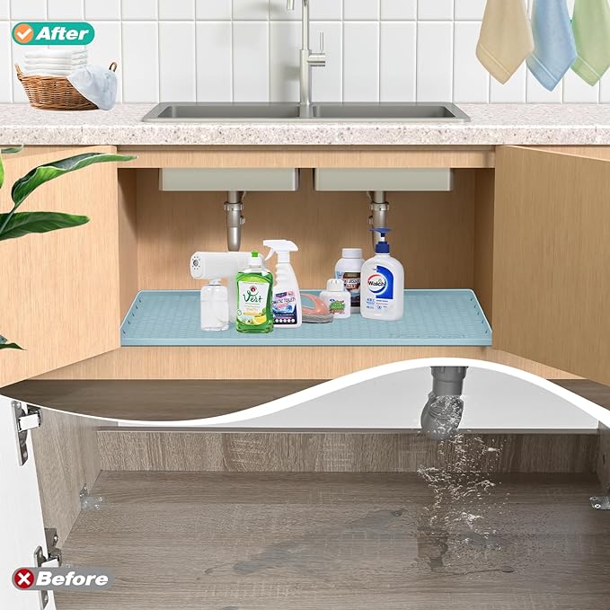 - Protect Your Cabinet: Safeguard your cabinets from water damage and leaks, and maintain cleanliness and order with this silicone mat; It offers a practical solution for extending cabinet lifespan and organization