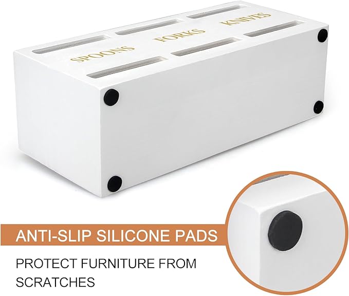 Ayiaren Wood Flatware Silverware Caddy White Cutlery Holder Kitchen Utensils Holder for Party Wooden Silverware Organizer for Countertop Knife Spoon and Fork Holder Table Utensil Caddy Organizer