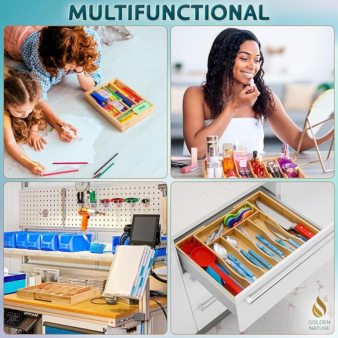 - MULTIPURPOSE ORGANIZER - Use for spoons, forks, knives, office accessories, makeup products and tools, kids arts and crafts supplies, electronics storage, and more