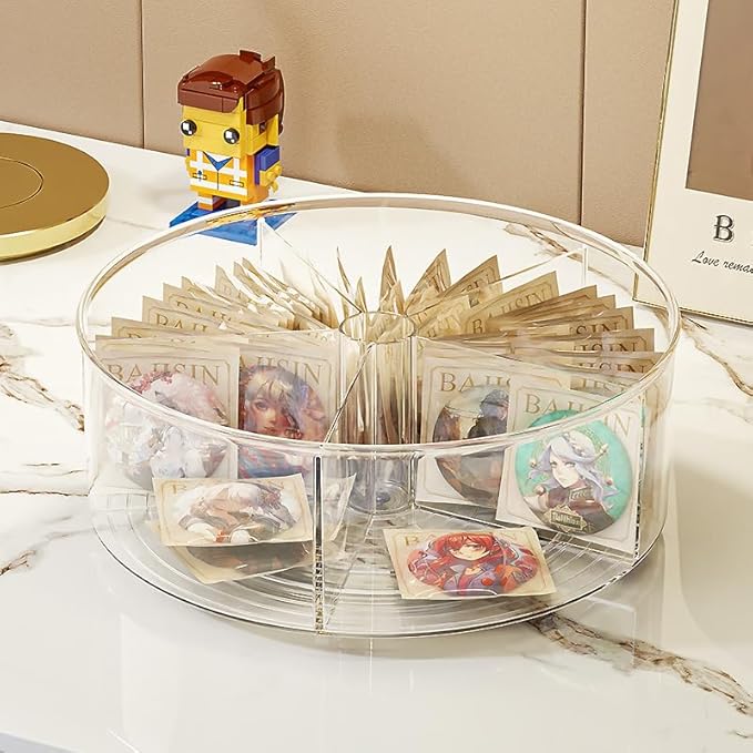- Large Capacity with 5 Dividers: Overall size: 11.5 x 11.5 x 4.3 inches, the lazy susan turntable comes with 5 individual compartments, it's large enough to hold a lot of stuff and has dividers to keep everything neat. And the 4.3 inches high edge can protect items stay in place and prevent them from falling down.