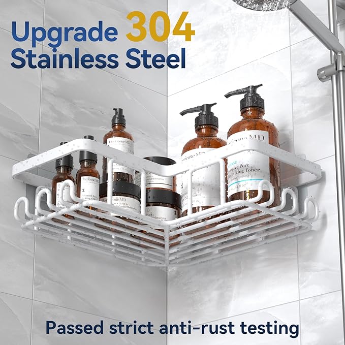 - Rust-Proof and Thicker Solid Frame: The corner shower caddy frame is made of stainless steel, coated with rustproof paint, and thickened wire than those shower caddies on the market. This adhesive shower caddy remains rust-free and maintains a high sheen for years