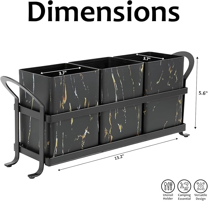 - Portable Design for Easy Mobility: The Monden marble metal cutlery caddy is created from marble and comes with black metal handles that make it incredibly easy to carry. You can fill this kitchen utensil holder up with whatever you need and use it indoors or out, wherever you want!