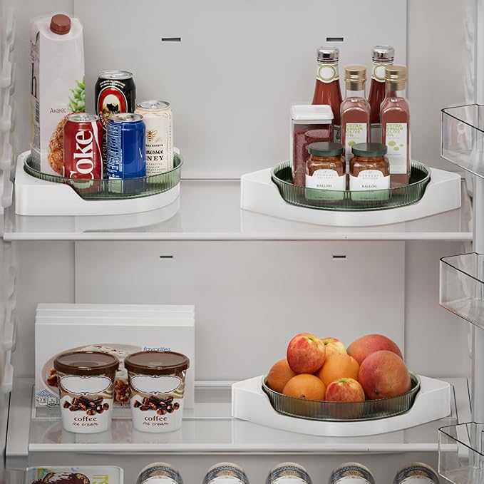 - 😊【Use Everywhere】: The Lazy Susan organizer offers a new way to organize and store condiments, spices, cosmetics, snacks, canned foods, medicines in your kitchen, countertops, cabinets, refrigerator, pantry, dresser, bathroom and office. Enhance the functionality and efficiency of every small space.