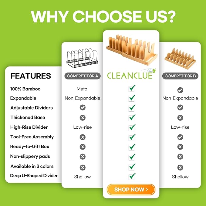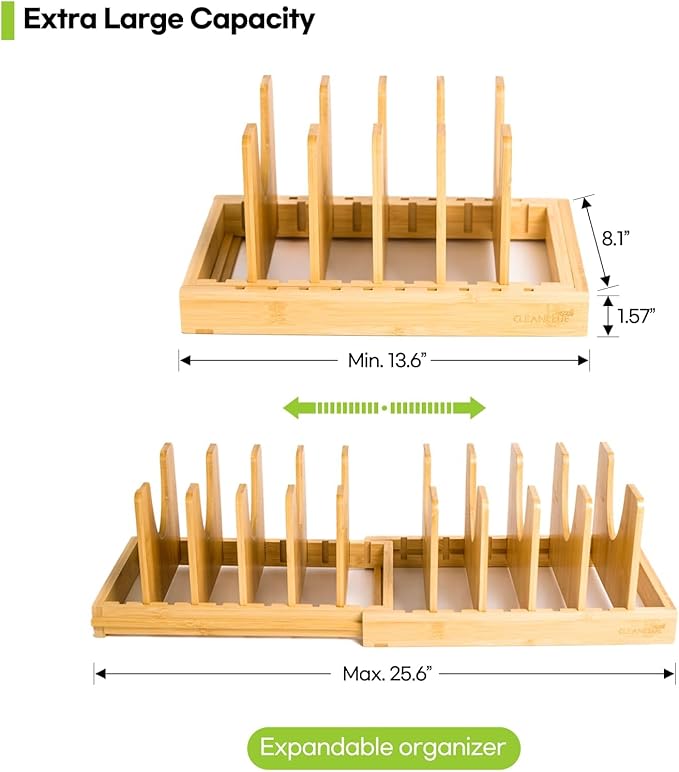 - Experience Lasting Durability and Natural Beauty - Crafted from 100% premium solid bamboo, offering sturdy construction and a beautiful natural look that is perfect for storing various cookware items like frying pans, skillets, and plates