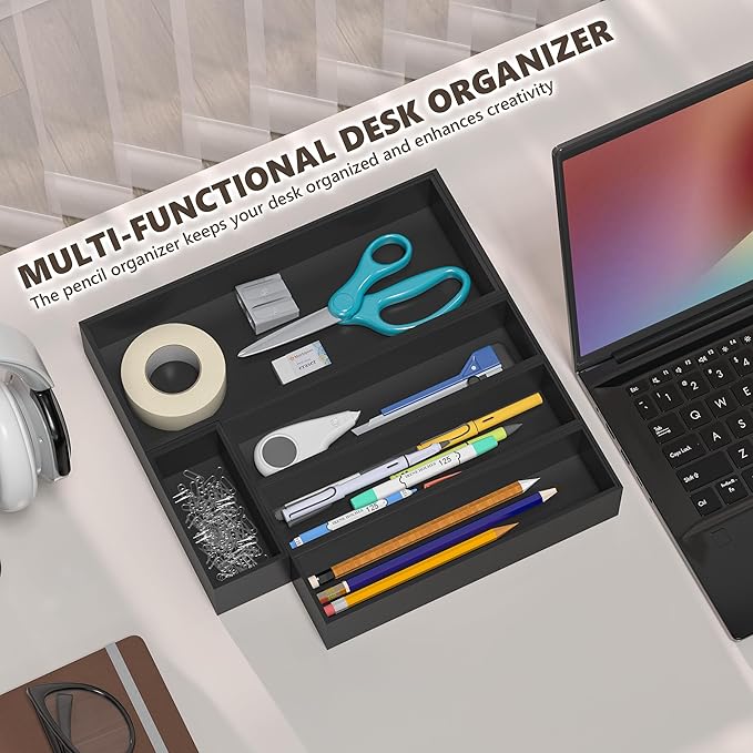 - Multi-functional Drawer Organizer Tray - Say goodbye to having multiple messy junk drawers and always having to dig deep for any needed items. Used in kitchen to organize silverware, spoons, spatulas, whisks, wine stoppers, bottle openers, bag clips, spices and other kitchen gadgets; used as bathroom vanity tray to keep perfume, candle, jewelry, trinket, watch, key neatly; or used as desk drawer organizer bins to accommodate your desk supplies, like pens, pencils, business cards, post-its, paper clips etc.