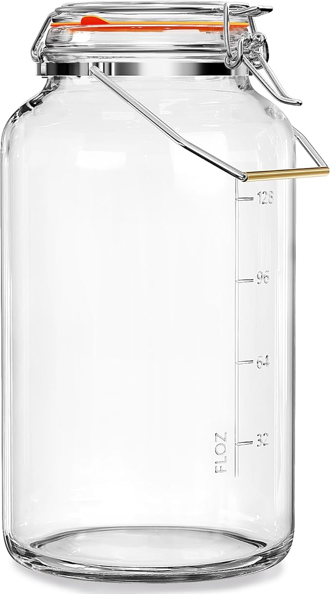 - Practical Design: -This large glass storage containers with lids is designed with a wide opening (4.3 inches mouth) and features a convenient capacity mark (ml and fl oz), not only is this sun tea jar practical, but it is also easy to clean, making it a breeze to maintain its pristine appearance.