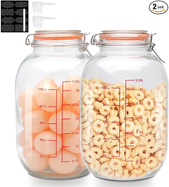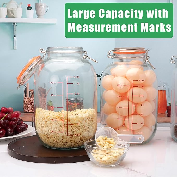- Multiple Storage Solutions:With a large capacity of 1 gallon,these glass jars are facilitate easy filling and scooping, making it suitable for dry goods like flour,sugar,rice,pasta,baking soda,beans,cereal or other daily essentials in your kitchen,as well as for liquid preparations like sun tea or fermented foods,keeping your space organized and tidy.