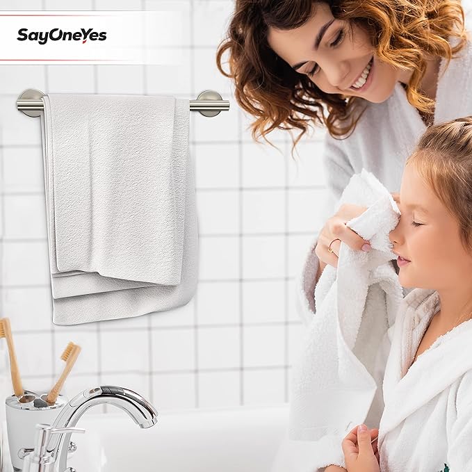 - ✔️ [Stylish Brushed Nickel Finish] Our towel bar for bathroom wall has a modern brushed nickel surface that resists fingerprints and water spots while blending beautifully with any décor.