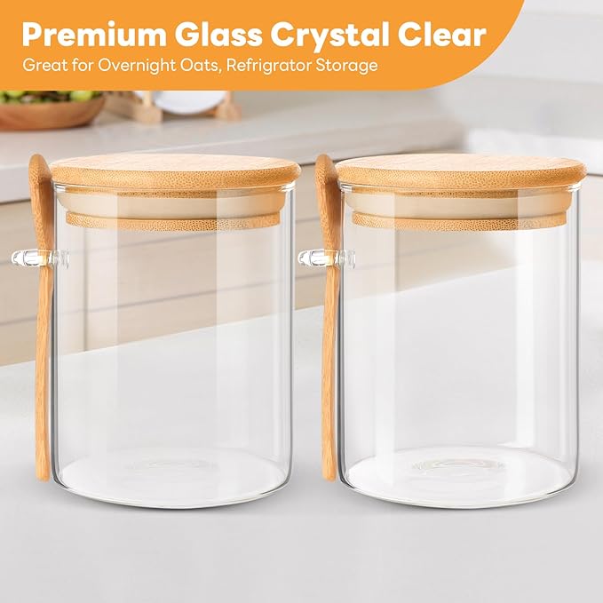 2 Pack 25oz Large Overnight Oats Containers with Lids, Overnight Oats Jars with Spoons, Glass Jars with bamboo Lids,salad jars with lids meal prep for Chia Seed Pudding Yogurt Cereal Coffee Flour