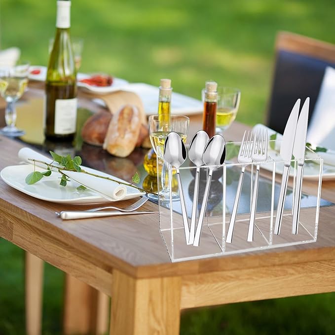 - ✅【Practical Design】: The countertop silverware organizer incorporates a beautifully designed cutlery compartment, The clear acrylic silverware rack will impress everyone! Great for party tables, kitchens, picnic tables and more! keeping your kitchen organized and convenient for you to get the corresponding silverware, also adding an elegant touch to your home decoration.