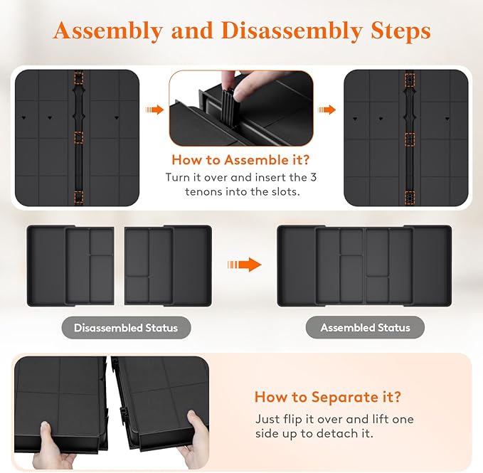 - Combinable and Removable Design: The flexible feature caters to the storage needs of various drawers. With a mortise-tenon connection, the utensil holder for drawer can be easily assembled together or separated into two individual boxes as per your convenience.