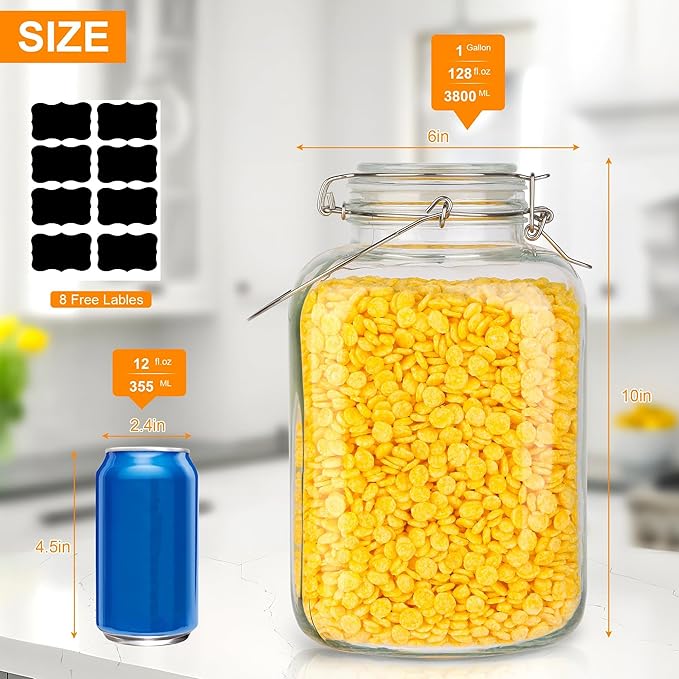 - [Airtight Glass Jars with Lids]: Our glass jars with airtight lids offer the perfect solution for storing various food items while keeping them fresh for longer periods.It is well sealed with a silicone gasket and stainless steel locking clamp to keep your food clean, fresh, and safe during storage.