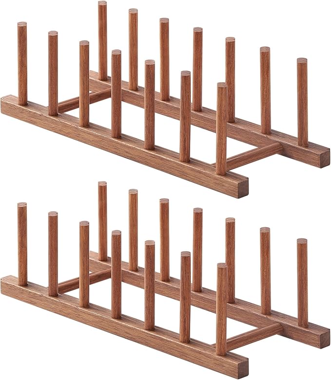 Pot Lid Plate Organizer Holder for Cabinet Space Saver-2 Pack Wooden Dish Drying Rack- Cutting Board Organizer Holder-Plate Rack for Dish/Pot Lid/Bowl/Cup/Cutting Board