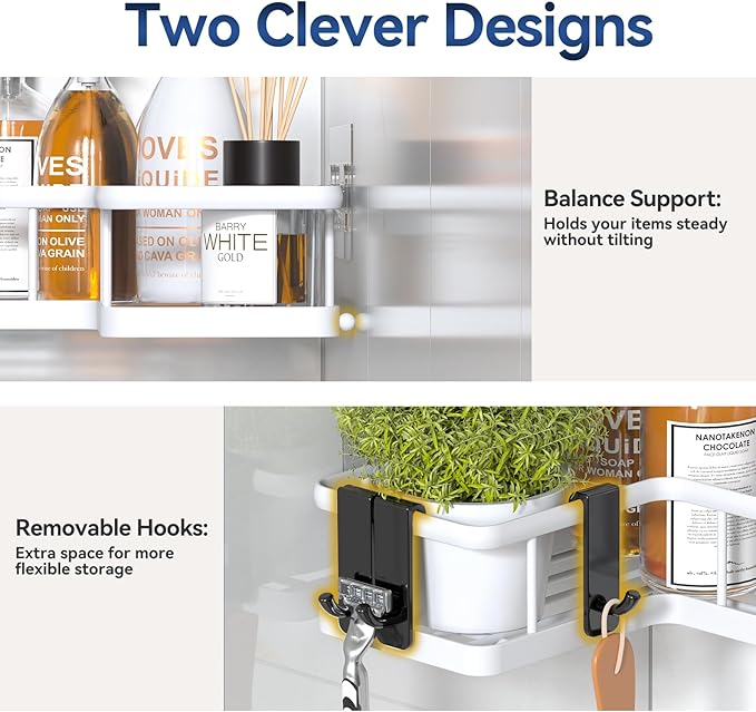 - SPACE-SAVING CORNER DESIGN:Engineered with L-shaped shower shelves that perfectly hug 90° wall corners. Our corner shower shelf provides 30% more capacity than standard models to store 19+ full-size shampoo bottles