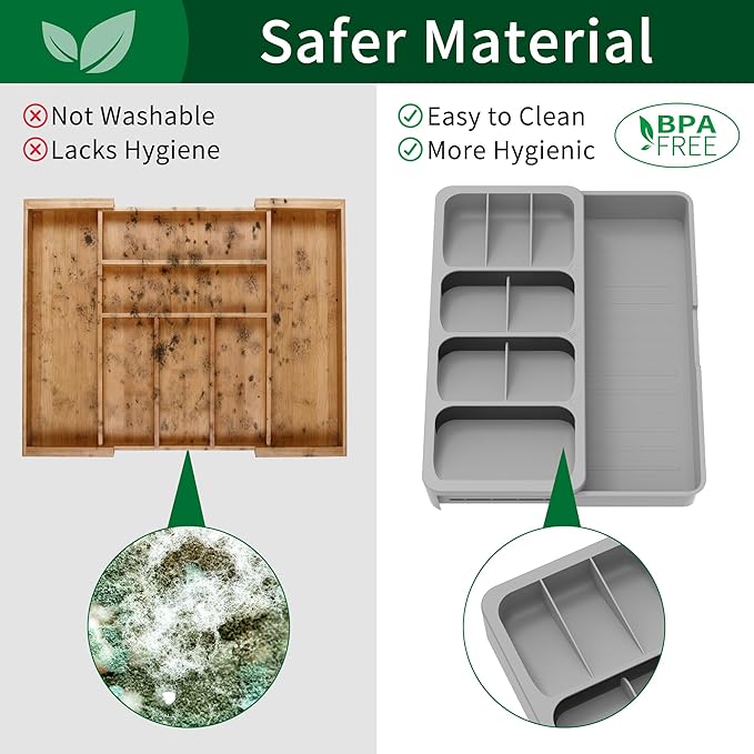 Kitchen Utensil Drawer Organizer, Expandable Silverware Organizer, BPA Free Small Cutlery Holder, Grey