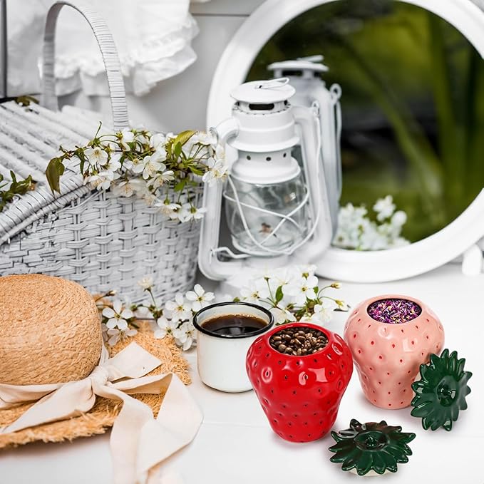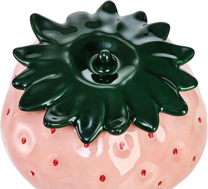 - High Quality: The strawberry shaped canisters are made of premium ceramic, which is thick, sturdy and durable. Our ceramic strawberry jar is crafted with a smooth surface with good gloss, which is not easy to deform and can serve you for a long time.