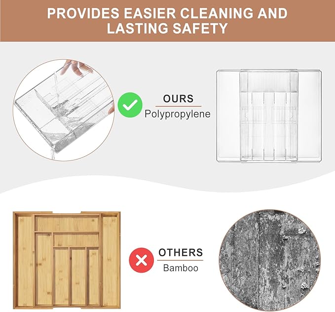 - Exceptional Quality for Enduring Performance Constructed from premium - grade plastic, this drawer organizer for kitchen utensils is built to last. It's not only incredibly sturdy but also remarkably easy to clean. The transparent design offers clear visibility, enabling you to quickly locate the utensils you need during cooking or meal - setting.