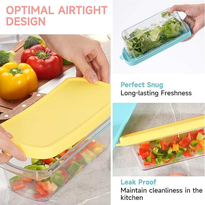 - - User-Friendly: After chopping your veggies, simply cover vegetable containers with the lid for immediate food storage. No need to transfer the veggie into other containers or search for additional boxes—the easy-to-seal lid provides instant chopping-to-storage convenience.