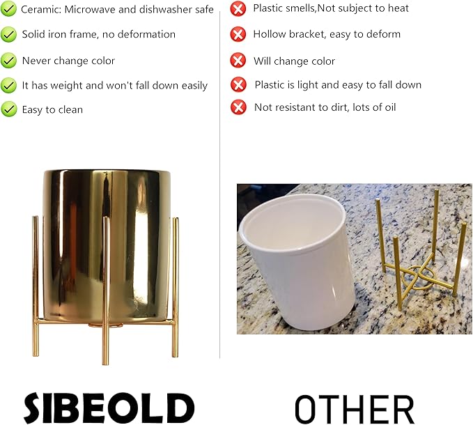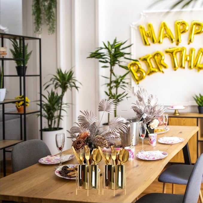 Sturdy Cutlery Holder Gold Ceramic With Metal Bracket Robust Silverware Caddy For Countertop - Spoon Holder Silverware Caddy