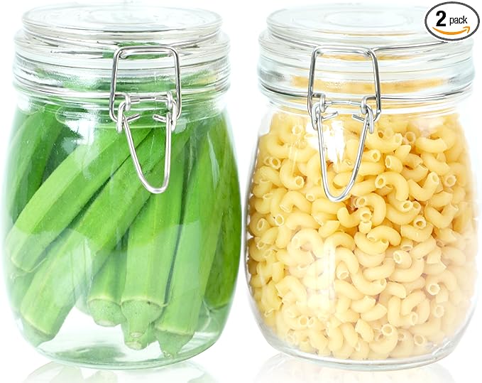 - AIRTIGHT & LEAKPROOF FOOD STORAGE JAR : The lids of the glass food container are airtight design, with food grade silicone seal gasket, will ensure an airtight seal leak-proof and prevents the entry of insect, keep your food dry fresh and preserve the flavor of food for a long time.The stainless steel secure buckle is easy to open and close, will preduce the mess when using the airtight storage jar.