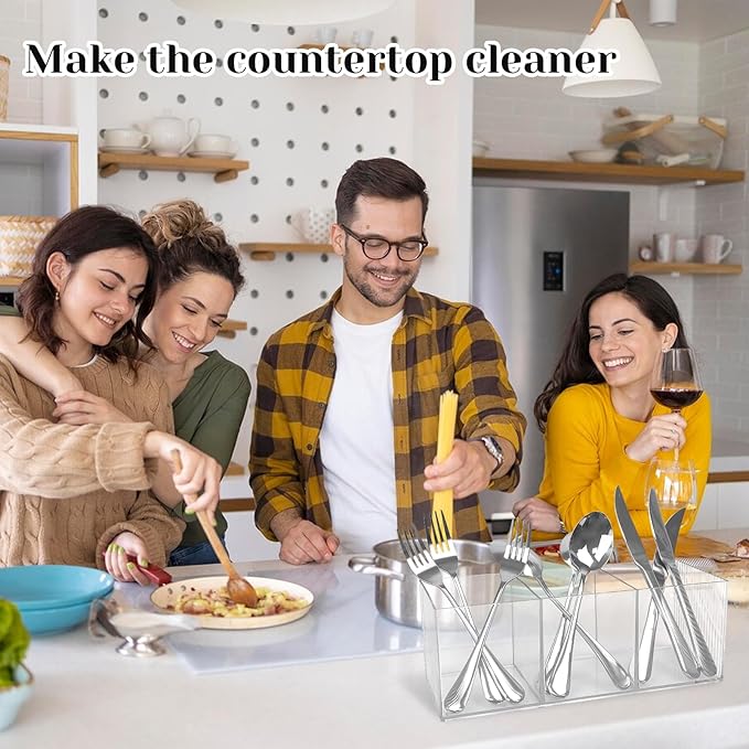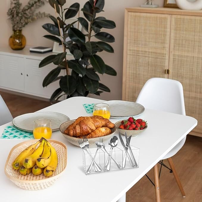 - ✅【Practical Design】: The countertop silverware organizer incorporates a beautifully designed cutlery compartment, The clear plastic silverware rack will impress everyone! Great for party tables, kitchens, picnic tables and more! keeping your kitchen organized and convenient for you to get the corresponding silverware, also adding an elegant touch to your home decoration.