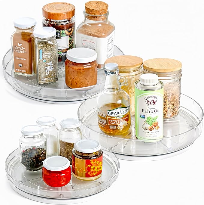 - Versatile Multi-Size Set of 4: Includes 9.3", 10", and 11", 12.5" Lazy Susan turntables. Choose the ideal size for your fridge organizer, cabinet organizer, pantry organizer, or bathroom countertop organizer