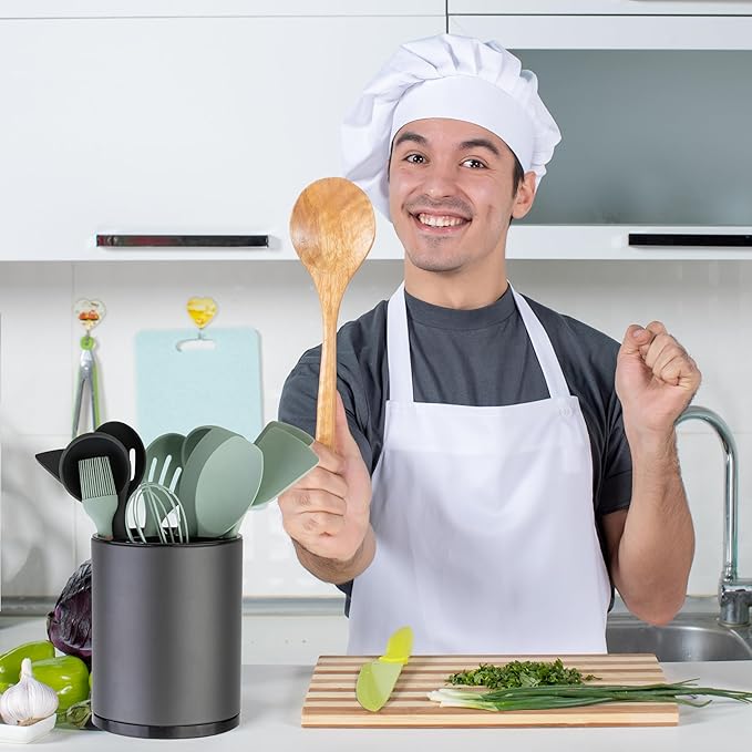 - 360° Rotation for Quick Access: Equipped with a smooth 360° rotation mechanism, our utensil holder allows for effortless access to your cooking tools from any angle. Simply spin the holder to grab the tool you need, saving time and frustration
