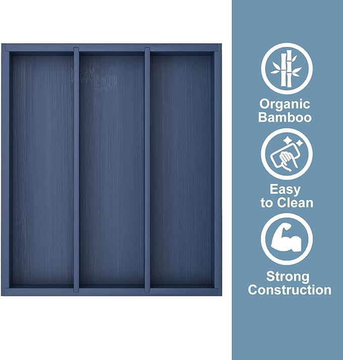 Silverware Organizer Bamboo Kitchen Drawer Organizer, Flatware Organizer Tray for Kitchen, Flatware, Utensils(Blue)