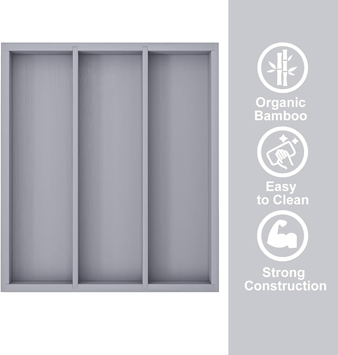 Silverware Organizer Bamboo Kitchen Drawer Organizer, Flatware Organizer Tray for Kitchen, Flatware, Utensils(Gray)