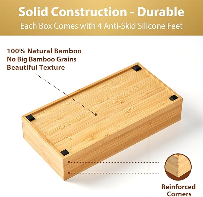 - EXTRA DEEP BOXES: Each box is 2.5" deep, provides more storage space than others' 2" deep boxes. 12" long, perfect for large kitchen utensils.