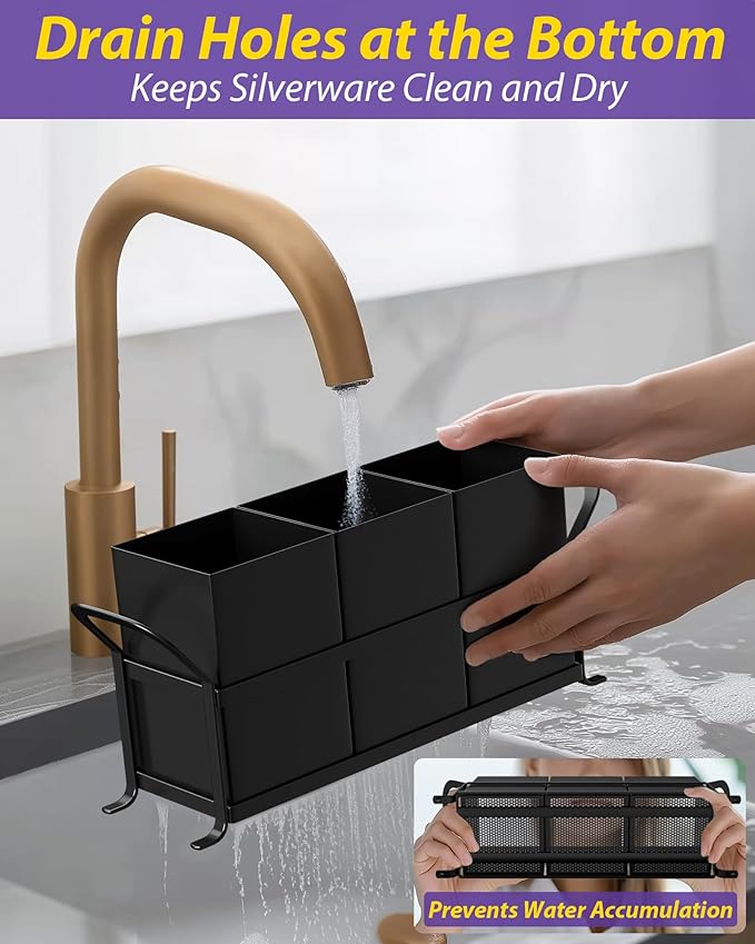 - πππ¨π₯ππππ π ππ§ππ ππ’π‘π¦π§π₯π¨ππ§ππ’π‘ πͺππ§π π‘π’π‘-π¦πππ£ πππ¦π | Crafted from high-quality metal, this silverware holder for countertop ensures lasting durability and resistance to wear and tear. The bottom frame is equipped with anti-slip pads to protect surfaces from scratches, keeping countertops and tables safe and secure. Perfect as a black utensil holder for kitchen counter or a flatware caddy for outdoor events.