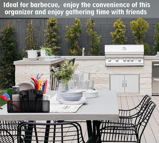 - Saving Time: Space-Kitchen Utensils Holder Is Versatile Enough For Use During Hosting Indoor/Outdoor Dinner Parties, Events, Weddings, Office Parties, Holiday Gatherings, And More, Making All These Parties More Convenient In A Much Neater And More Compact Way. What's More, You Can Grad What You Want In A Second By Using Our Black Utensil Holder, Which Can Help Save Your Time On Finding Utensil.