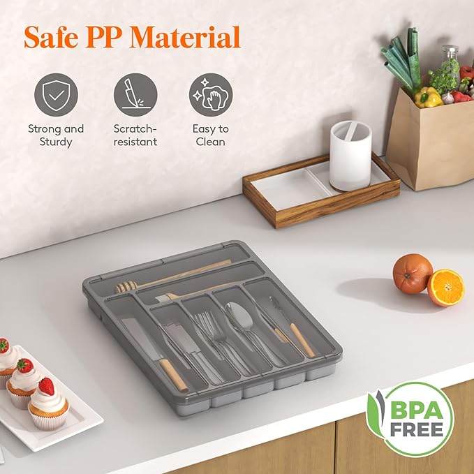 - Premium Material: Made from sturdy food-grade PP material, our silverware container with lid is built to withstand daily use. It is BPA-free, ensuring the safety of all types of flatware. Cleaning is effortless - just rinse with water to remove stains