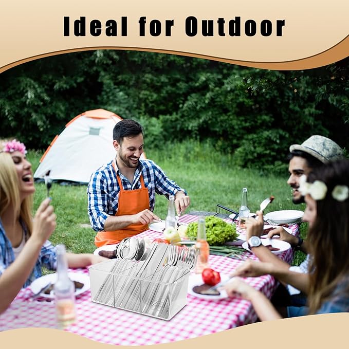 - Built-in Handles: The wooden utensil holder designed with handles making it easy to carry around. Easily load up your kitchen utensil holder with items and take it indoors or out for meals! This cutlery holder will come in handy at the outdoor table, picnics, barbecues, parties, dining , wedding, or holiday gatherings.