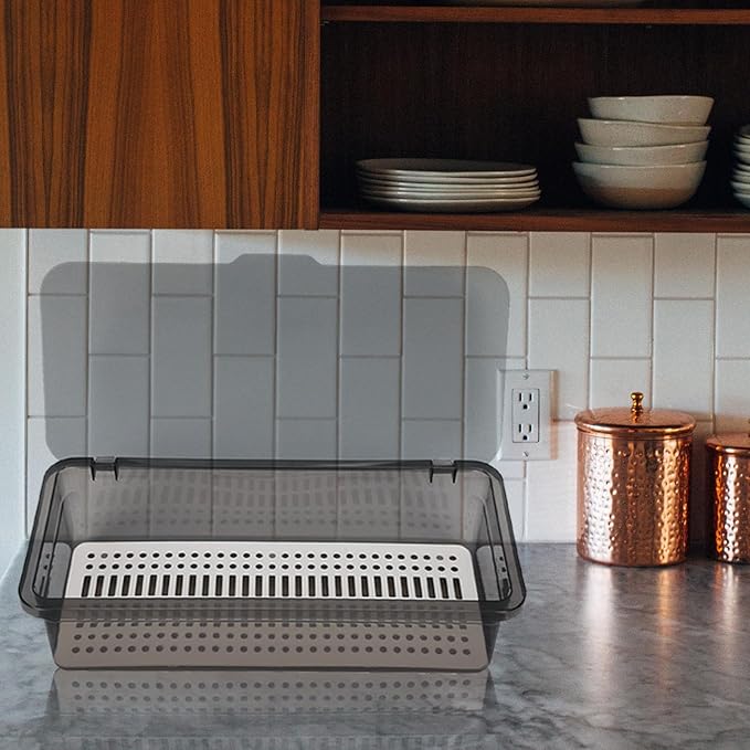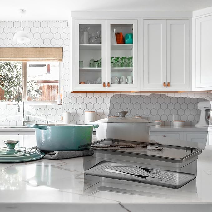 - ✅【With lid and drain design】- The Dinnerware Tray with Lid and Drain, cleverly drain water, Keep the flatware dry.