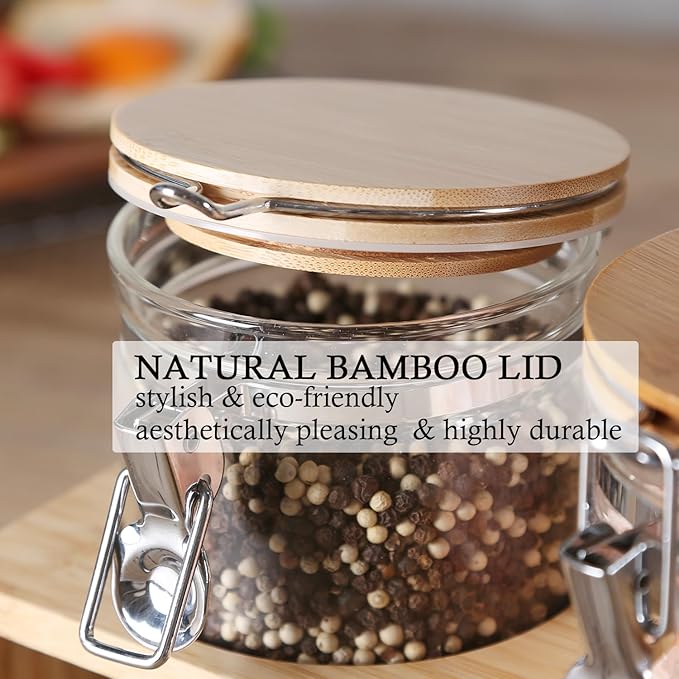 - Glass storage canister with airtight locking clamp lid: equipped with locking clamp and silicone sealing ring to achieve airtight sealing and keep the dry goods inside fresh. The lid is firmly secured to the jar and maintains the quality of your stored items over time. The lid opens effortlessly—simply release the clamp to access your items with ease.