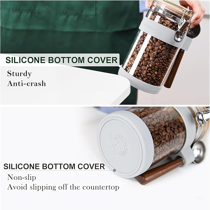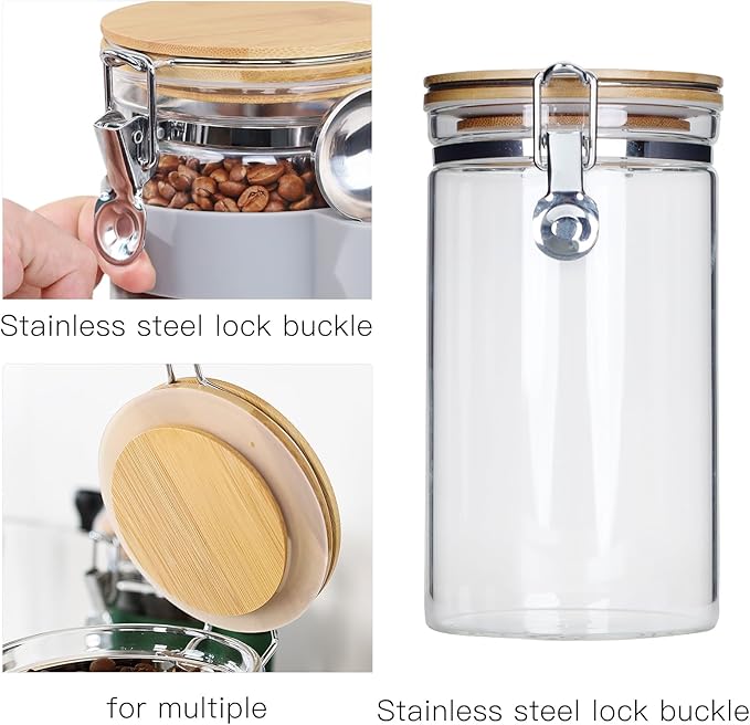 - The sealed glass canister has good sealing,so dry goods can be stored for a long time, and can keep the dry food inside fresh and moisture-proof,ideal for storing coffee beans,ground coffee,nut,peanut,pecan,walnut,nutmeg,cocoa,brown sugar,loose leaf tea,matcha, etc.