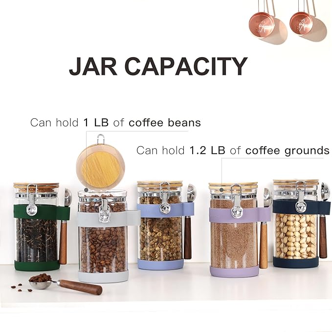 - Storage capacity:A 40oz/1200ml glass canister can hold 1 pound of coffee beans,1.1 pound of ground coffee,about 4 pound of sugar or about 1.2 pound of flour.
