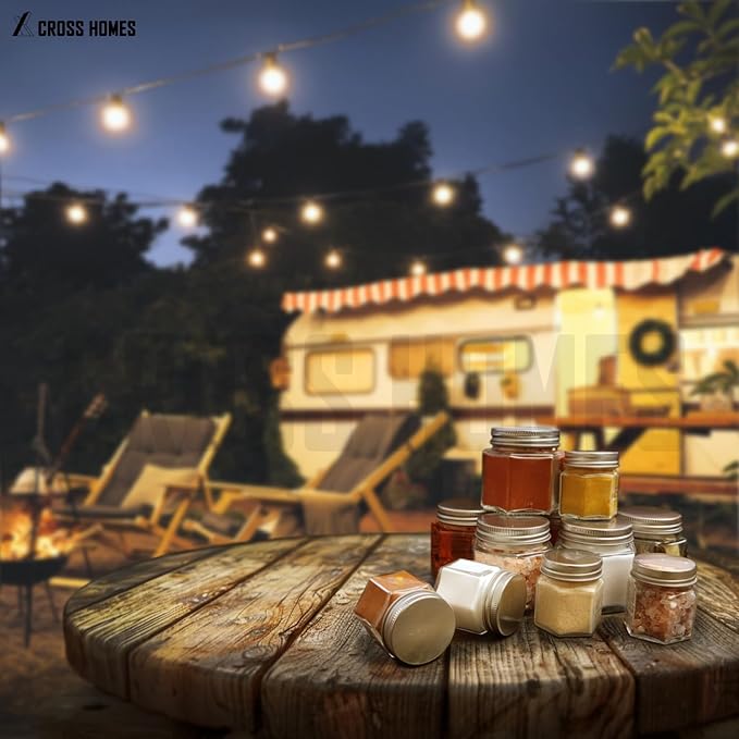 • PREMIUM COMMERCIAL GRADE HEAVY DUTY HEXAGON GLASS JAR WITH AIRTIGHT SCREW LIDS DESIGN: Our unique glass jar design makes for a beautiful look in your kitchen while also saving space vs. a round or square design jars. Each empty airtight Large 4 oz jars measure 2.5” tall x 2.5” wide and hold a heaping 1/2 cup volume. Our airtight screw lid is designed for preventing any pop off, loose lids issue. Our lids always stay on securely.