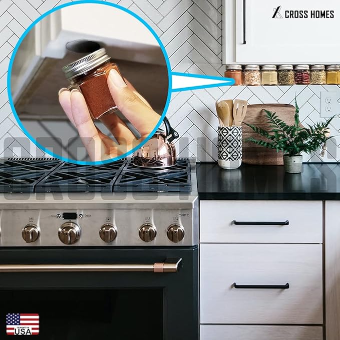 • VERSATILE & MULTIPURPOSE USAGE: You can keep spices on your Fridge, Refrigerator, Back-splash, inside of the pantry, on the side of a cupboard or on any other ignored space in your kitchen. You can mount our spice jars in any directions. Make own Magnetic Spice Rack or Hanging Spice Rack in Kitchen, RV travel trailer, Boat, Mobile Home and any places.