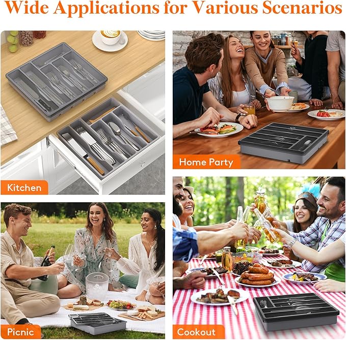 - Portable Design: Our flatware organizer for drawer is versatile and can be used for more than organizing kitchenware. Its lightweight design makes it ideal for various occasions such as home parties, cookouts, picnics, camping and other outdoor event