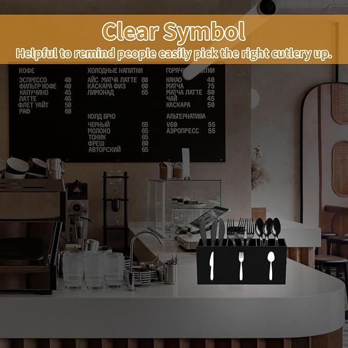 - Clear Symbol Instruction: The cutlery holder have very smart pattern about the silverwares: spoons, forks and knives. If you put the utensils handle side up, the users can identify quickly and pick up the silverware they need.