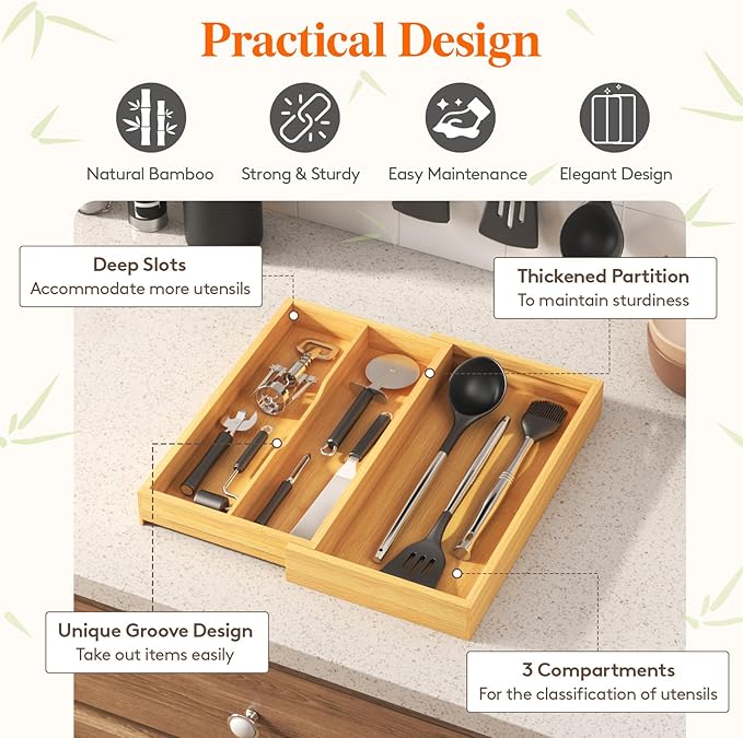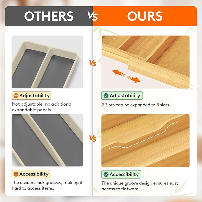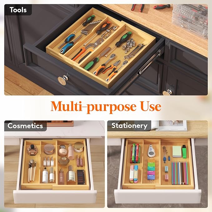 - Versatile Storage: This cutlery drawer organizer allows you to categorize your utensils making it easy to access the items you need. It’s not only perfect for kitchen utensils but also for various small items in other room drawers