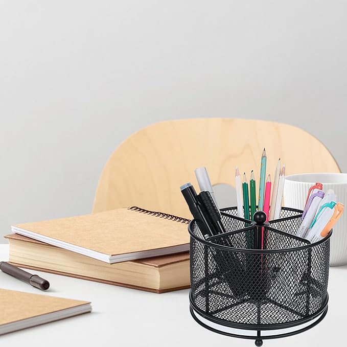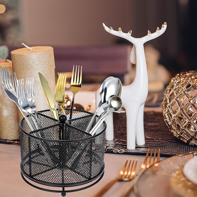 - 360° Rotating & Always Stand Up: Well made of all black metal mesh and stainless steel drain holes provide enough breathing space for the silverware caddy. The silverware holder for countertop with 360-degree rotation makes the metal caddy easier to use. In addition, the small utensil organizer got a weighted base so won't tip over easily.