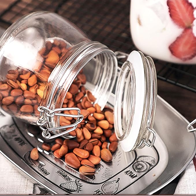 - Airtight Clamp Lids : The glass food storage jar with airtight clamp lids, feature food grade silicone seal gasket could form an air-tight seal when snapped closed, ensure your food remain fresh and protected from moisture. The secure locking is made of stainless steel, heavy duty good quality and resists rusting, easy to open. Whether you're organizing your fridge or pantry, these jars help keep your food fresh and your kitchen tidy