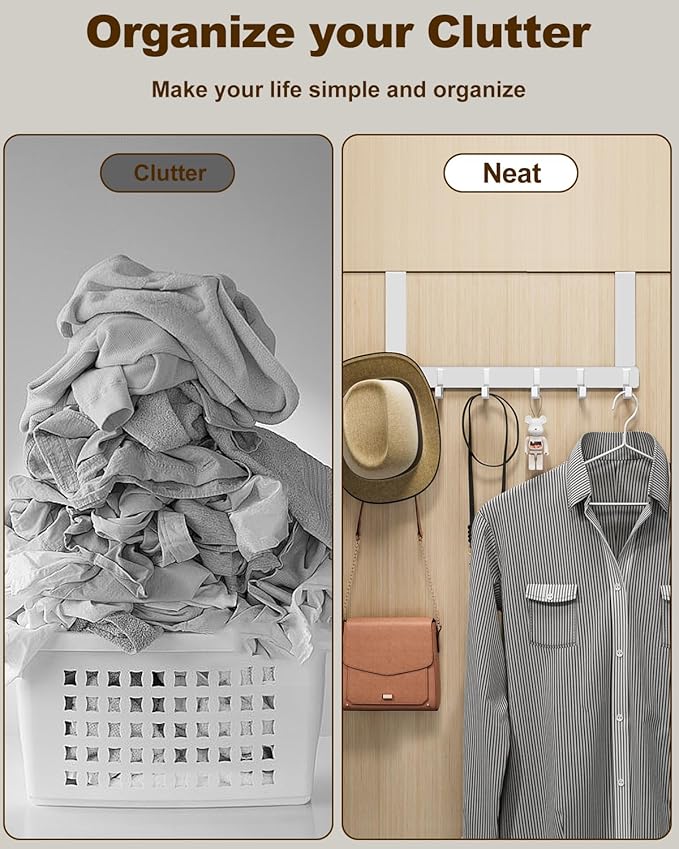 - Modern Design - Designed with a sleek finish, this over-door hook rack complements any home decor style. The minimalist design makes it an ideal addition to bedrooms, bathrooms, or entryways.