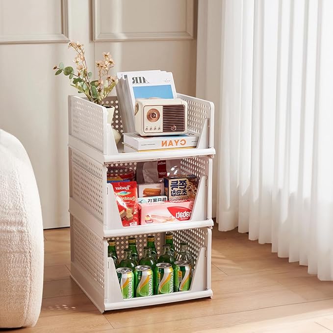 - Multifunctional Wardrobe Storage Box-XL Stackable plastic storage basket bin has multiple uses, you can put the plastic storage basket in the closet to store clothes, blankets, bags and shoes, etc, You can also place the drawer shelf storage container in the kitchen to store pots, pans, bowls, spices, vegetables, groceries and other items, beside it's an ideal choice to put in your bathroom, living room, study room and office to manage your space.